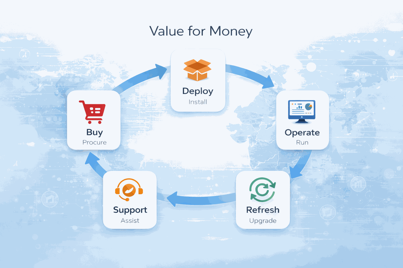 At RDP, value for money means delivering the best total cost of ownership across the lifecycle—purchase, deployment, operations, and support.