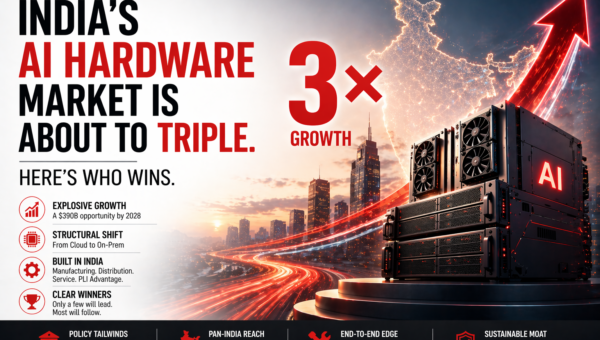 India's AI hardware market will reach ₹75,000 crore by 2030 as enterprises move GPU workloads on-premises. Indian OEMs capture structural advantages that global competitors lack.