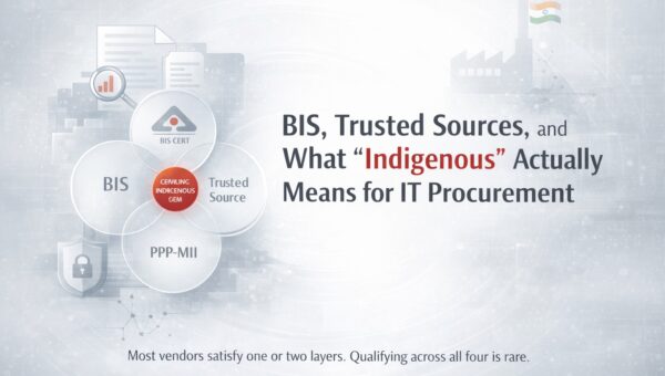 Indigenous IT procurement in India rests on four distinct compliance stacks—BIS registration, Trusted Sources/Products lists, PPP-MII local-content thresholds, and PLI 2.0 eligibility. Understanding each prevents procurement mistakes.