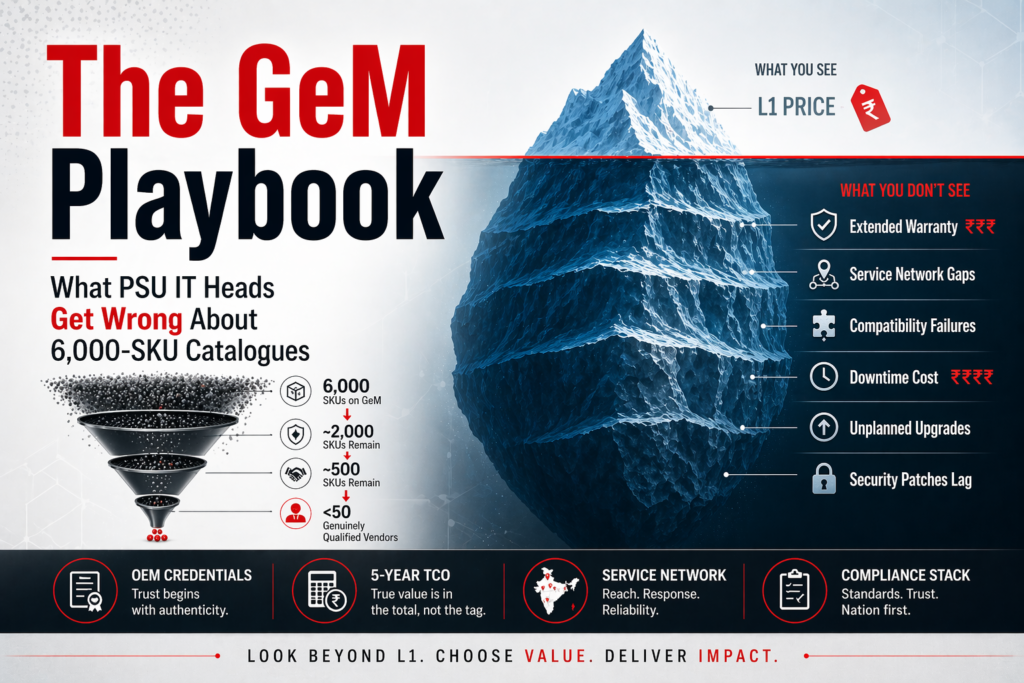 The vendors in your preferred category — the ones with MSE-I registration, BIS certification, full SKU coverage, and documented PSU experience — are there for a reason. They’re not the cheapest in isolation, but they’re the cheapest over the lifetime of the contract because they don’t collapse, don’t miss timelines, and don’t hand you compliance problems six months into a refresh. That’s the actual math. The marketplace knows it. The best PSUs know it. And as of today, you do too.