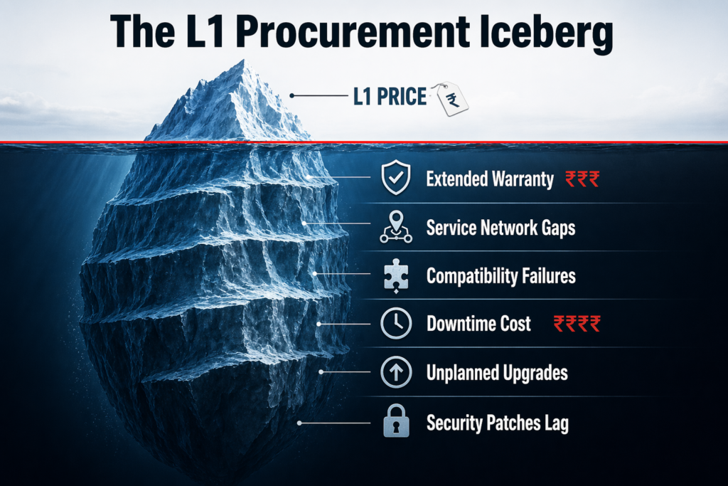 | Lifecycle Cost | Selecting lowest L1 price without AMC or energy cost modelling | TCO 40–60% higher over 5 years than a slightly costlier but efficient device | Evaluate 5-year TCO including power (watts × uptime), AMC, and refresh |
