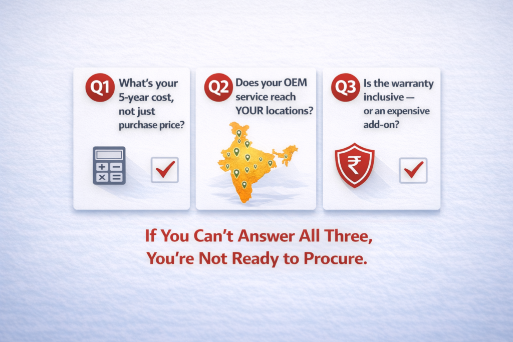 The honest finding: Indian OEMs win on five-year TCO for organizations with fleet sizes above 500 units, distributed geographies across Indian metros and tier-2 cities, and workloads where component-level repair speed matters. For centralized facilities, stable IT teams, and cloud-forward architectures that don’t care about on-prem hardware refresh economics, global OEMs often remain the simpler choice despite higher cost. The decision shouldn’t rest on capex alone—it rarely does in companies that actually audit their fleet economics.