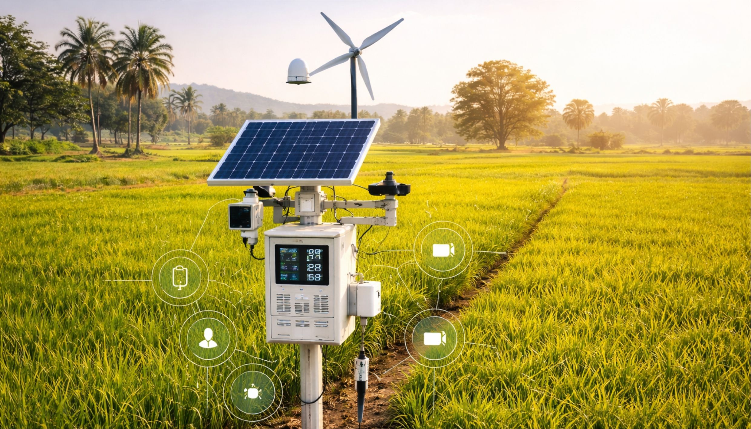 Complete solar + battery systems for zero-grid operation. IP67 enclosures rated for Indian monsoon, dust, and 50°C+ ambient field conditions.