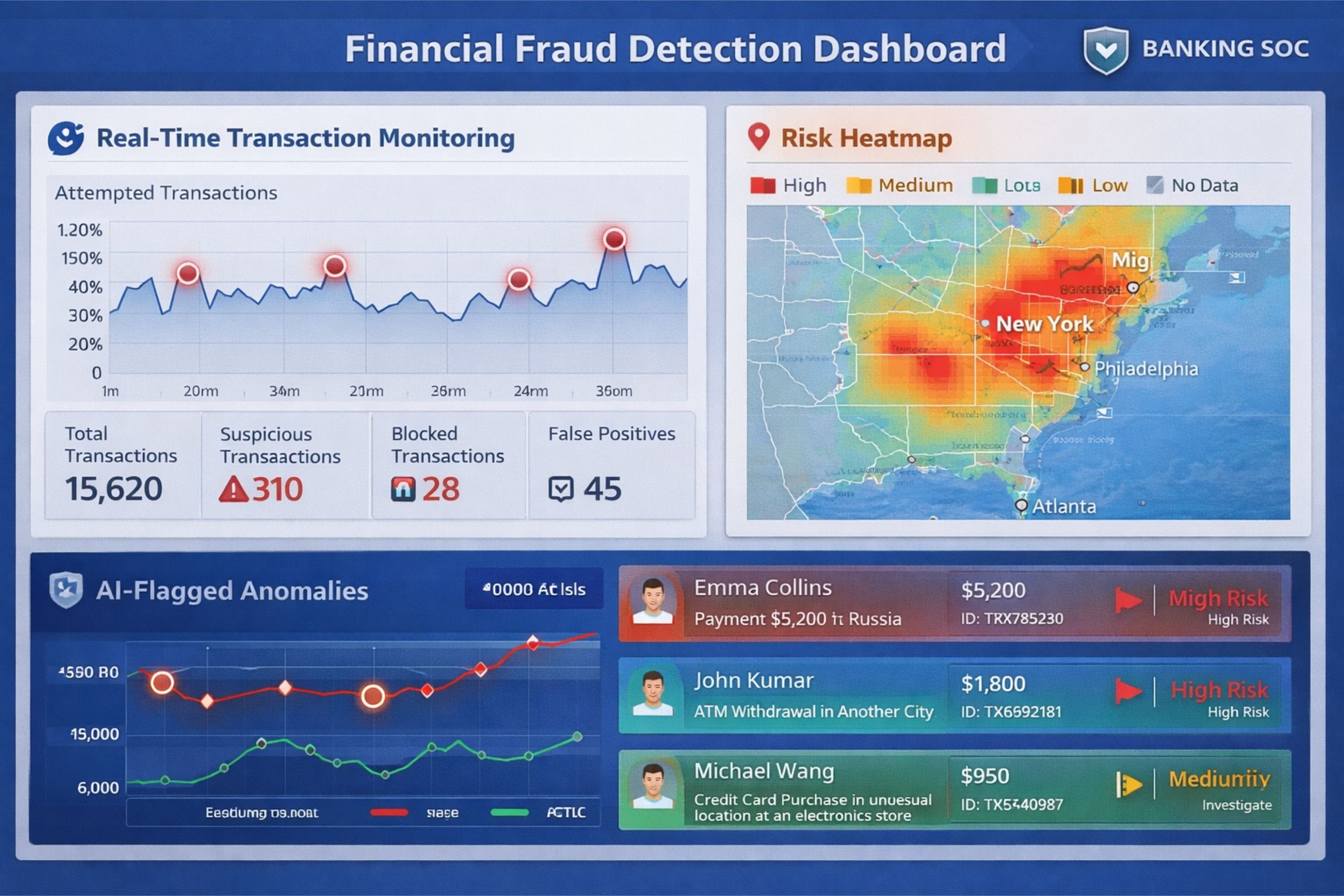 | Identity Fraud | CNN + Biometric | Synthetic identity detection, document forgery analysis, and liveness verification | 99.9% biometric accuracy |