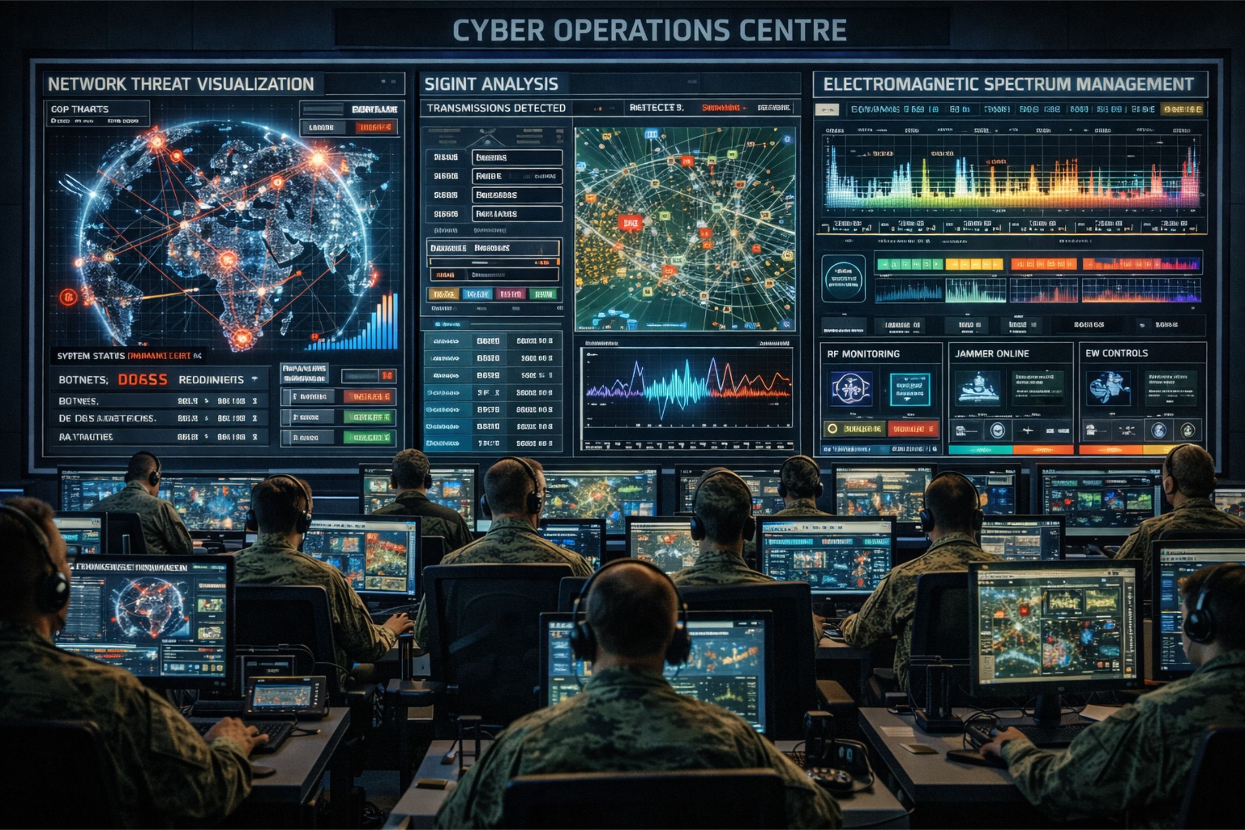 The electromagnetic spectrum is the new contested domain. India’s adversaries deploy increasingly sophisticated cyber attacks, electronic jamming, and signals.